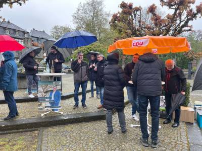 CDU Wahlkampfstand vor der Bäckerei Lohner