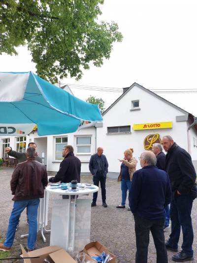 CDU Wahlkampfstand vor der Bäckerei Lohner